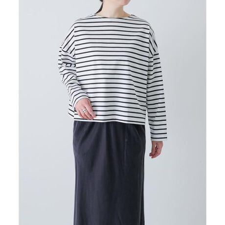 日々の着こなしに頼もしいトップスが届きました。クロップド丈が上半身をスッキリと見せ、ウエストの位置が上がりスタイルアップ効果も◎身幅はたっぷりとしていてリラックスした着心地。肩が落ちたデザインも雰囲気があります。お手持ちのパンツやスカートと組み合わせてデイリーユースが叶います。首元を美しく演出するボートネックもポイント。1枚あると何かと便利なおすすめアイテムです。
