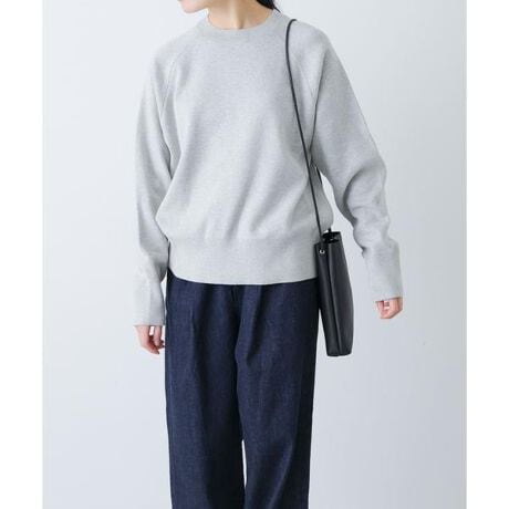 上品カジュアルを叶えるニットが届きました。スウェットライクなデザインで着心地が良くラグランスリーブがさり気ないアクセントに。大人コーデにおすすめな着まわし力の高いトップスです。綿100%なのでチクチク感が気にならないのも嬉しいポイント。コンパクトな首まわりと裾/袖口のリブが奥行きを与えています。デイリーに活躍するおすすめの1枚です。
