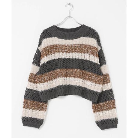 様々な質感の糸を贅沢に編み立てた、表情豊かなボーダーニット。透かし編みの絶妙なシアー感が、春らしいクリアでシンプルな空気感を運びます。ゆったりとしたシルエットは、デニムやスラックスと合わせるだけで、等身大のこなれ感あるスタイルを叶えてくれる一着。異なる編み地が作る立体的なデザインが、日々のコーディネートに新しい楽しさを添えてくれます。