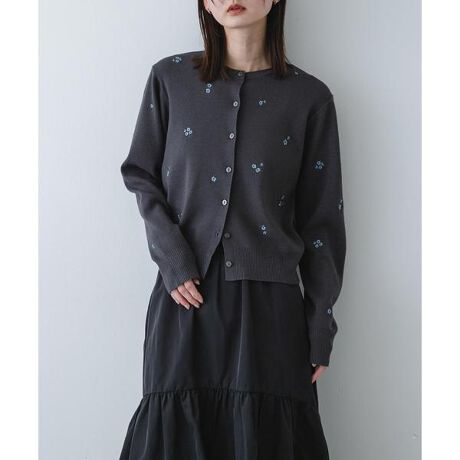 【可憐な彩りを添える、小花柄刺繍のシンプルカーディガン】