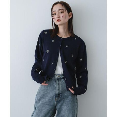 【可憐な彩りを添える、小花柄刺繍のシンプルカーディガン】