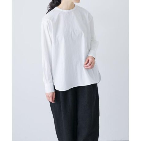 ロングシーズン着まわしに便利なコットンを使用した一品。程よくハリがあり、ゆとりがありますがどこかすっきりとしたシルエットに仕上がっています。無駄をそぎ落としたシンプルで大人に寄り添うデザイン。カフスに配置された2つの釦、コンパクトな首元や前後差のある裾、背面に入ったタックなどさり気なくこだわりが詰まっています。スタイリング次第でロングシーズン活躍。