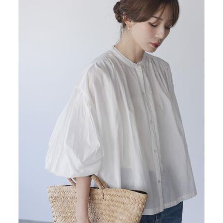 インド生産特有のエアリーな風合いで、肌への刺激も少ないコットン素材を使用したブラウス。