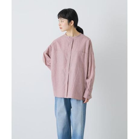 羽織りとしても活躍する前開きのシャツ。ワイドシルエットとコンパクトな首元が抜け感をもたらしています。身幅はたっぷりとしていて、上半身のラインを拾わず着心地の良いサイズ感。ボタンが見えない比翼仕様とヨークが無いミニマルなムード。生地は程よくハリがあるコットンリネンを使用しています。新しい季節を感じさせるカラー展開にも注目です。