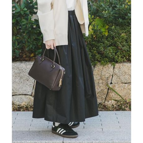 ウエスト周りに贅沢に施したタックが、裾に向かって自然なボリュームを描くAラインスカート。縦に入るラインが腰まわりをすっきりと見せ、360度どこから見ても立体感のあるシルエットに仕上げました。ウエストは総ゴム仕様で、リラックス感のある穿き心地ながら、きれいめな印象をキープ。程よいハリと光沢感のある素材と、肌なじみの良いニュアンスカラーが、日常の装いにさりげない品を添える一着です。