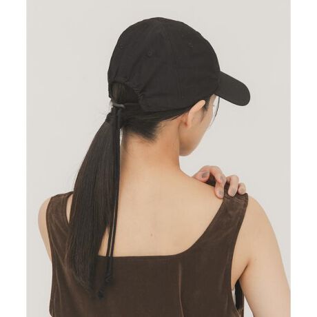 長めのつばと、バックコードがポイントのCAP。つばの長さがモードな印象にしてくれます。