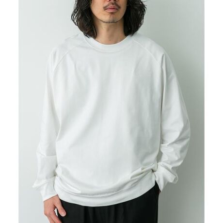 ベーシックなアイテムながら、ラグランスリーブ仕様や、裾に配置されたピスネームなど細かいディテールが効いたシンプルすぎない一着になっています。