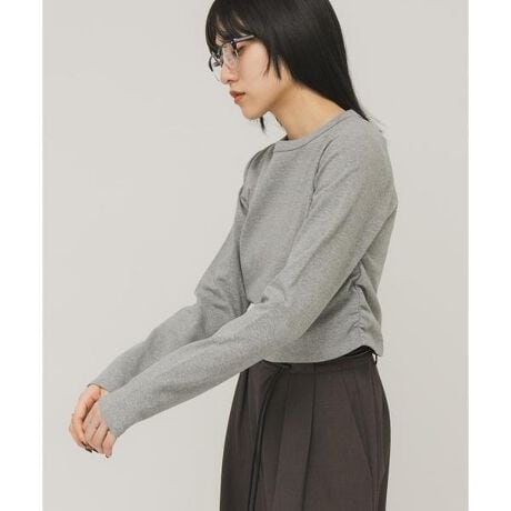 【サイドのシャーリングが特徴的なクロップド丈トップス】