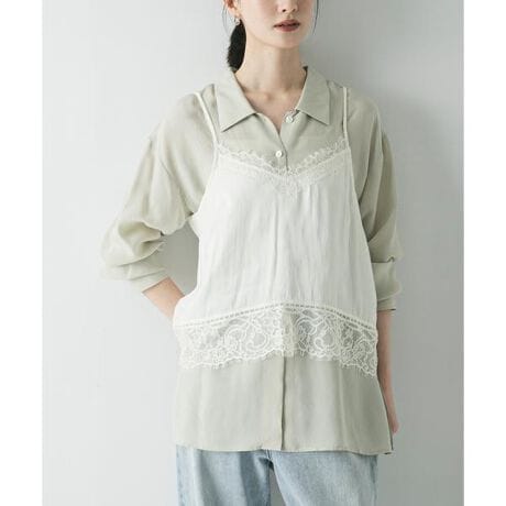 ヴィンテージライクなレースが目を惹く、サテンレースキャミソール。