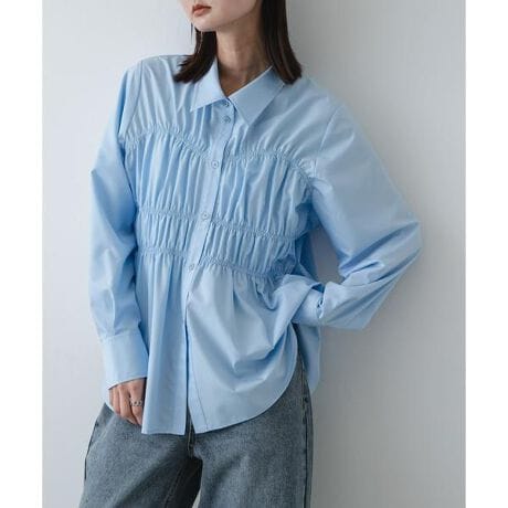 繊細なディテールが光る、大人のためのシャーリングブラウスです。しわが気になりにくいソフトな質感の生地を使用しており、忙しい朝もアイロンの手間を省いて軽やかに着用いただけます。最大の特徴は、フロントに贅沢にあしらわれたシャーリングデザイン。布地に美しいドレープと立体感を生み出し、身に纏うだけで華やかでエレガントな印象を演出します。