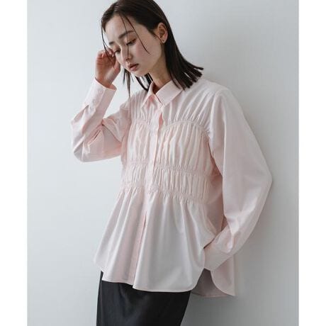 繊細なディテールが光る、大人のためのシャーリングブラウスです。しわが気になりにくいソフトな質感の生地を使用しており、忙しい朝もアイロンの手間を省いて軽やかに着用いただけます。最大の特徴は、フロントに贅沢にあしらわれたシャーリングデザイン。布地に美しいドレープと立体感を生み出し、身に纏うだけで華やかでエレガントな印象を演出します。