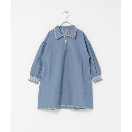 ナチュラルな風合いのデニム素材を使用した、トレンド感のあるデニムワンピース。程よくゆとりのあるAラインシルエットで、動きやすく柔らかい着心地です。衿と裾はブランケット刺繍と、袖口はスモッキング刺繍を施したクラフト感のある一着。1枚でさらっと着るのはもちろん、カットソーなどとレイヤードスタイルもおすすめ。ボトムスやレギンス、ソックス合わせなど色んなスタイリングを楽しんでいただけるアイテムです。