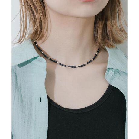 深みのあるダークトーンのビーズを連ね、間にシルバービーズを挟み込んだネックレスです。