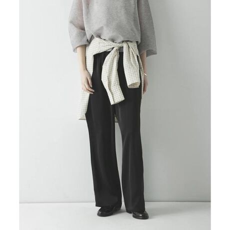 上品な光沢感と美脚シルエットを両立した、サテンイージーセミフレアパンツ。