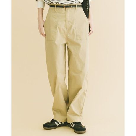 フロントの大きめパッチポケットが印象的なストレートベイカーパンツは、ミリタリーデザインをクリーンに落とし込んだ大人仕様。腰まわりに程よいアクセントを加え、体型を拾わずすっきりとした印象に。広がりすぎないストレートラインとややハイウエストな設計で脚をきれいに見せ、スニーカーやフラットシューズとも好相性。ニュアンスカラーと程よくハリのある素材で、上品なカジュアルスタイルが完成します。