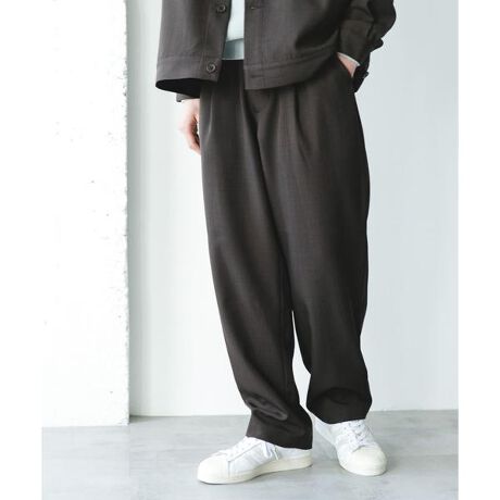 ・ワンタックをあしらったセミワイドシルエットで、後ゴムのイージーパンツ仕様に。ウエストにはドローコードも装備