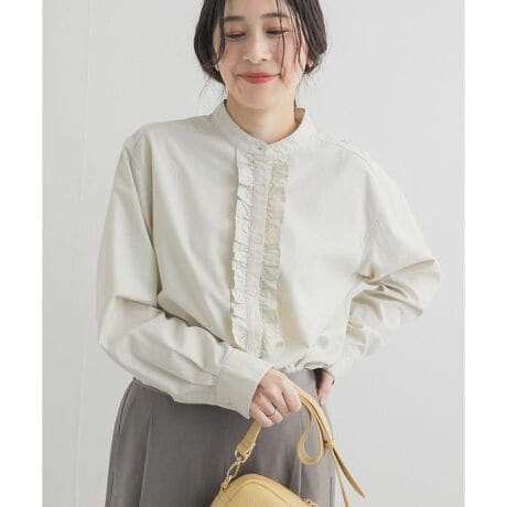 立体フリルが目を惹く、大人カジュアルな綿レーヨンシャツ