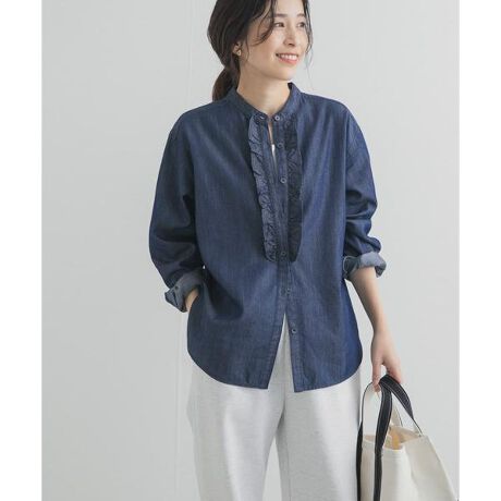 立体フリルが目を惹く、大人カジュアルな綿レーヨンシャツ
