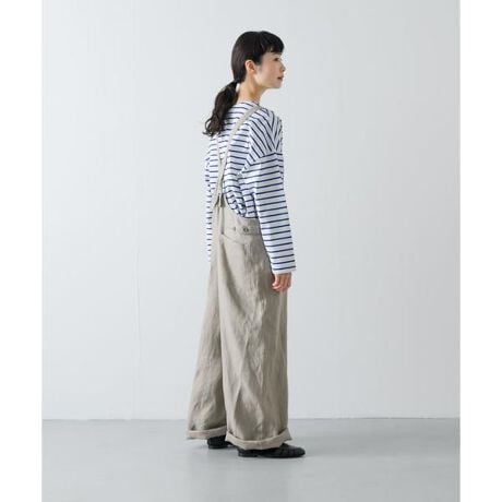 簡単に存在感のある装いを叶えるアイテム。少し厚みのあるリネンを使用し、くったりとした表情が魅力的です。紐がバックでクロスになっているので肩から落ちにくく、後ろ姿も素敵なデザイン。飽きの来ないシンプルさが着まわしに重宝する一品。シンプルにカットソーやブラウスを合わせるだけで抜けた雰囲気に。ニット・カーディガンとのコーディネートもおすすめです。1枚あると幅広いスタイリングをお楽しみいただけます。アジャスター・ボタン付きの肩紐で長さが、ウエストは両サイドに付いたボタンで幅の調節が可能。コットン素材でもご用意しているのでぜひご覧ください。