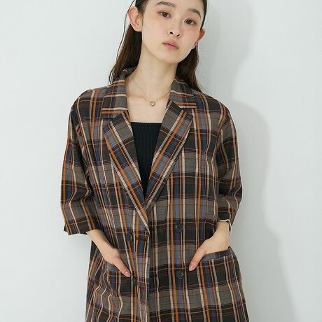 チェック柄が目を引く、コットン100の軽やかなハーフスリーブジャケット。