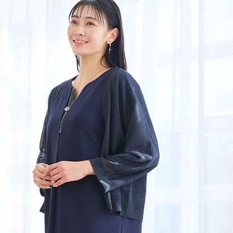 ほのかに煌めくスパークナイロンのニットカーディガン。