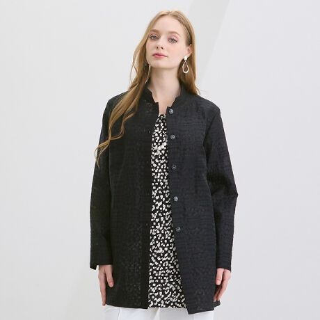 やや透け感があるので中に着るインナーの色によっても印象が変わってきます。同色を合わせればなじみ良く落ち着いた印象に。反対色を合わせれば織柄がほんのりと見えるようになります。