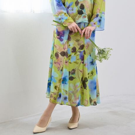 華やぎ度アップ インポート素材のフレアスカート