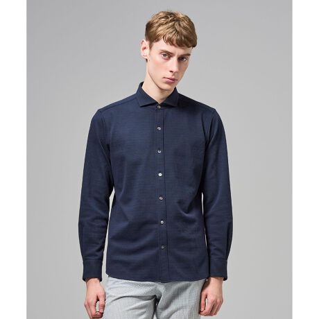 シンプルながら、独特の素材感で個性のあるシャツ。ノータイでもジャケットでも様になり幅広く対応します。