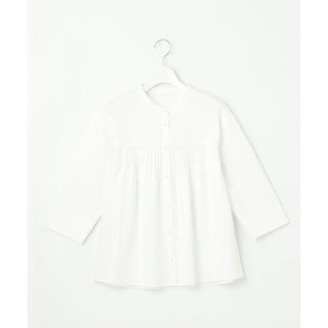 胸元のタックが立体的な表情をプラスする、バンドカラーカットソー