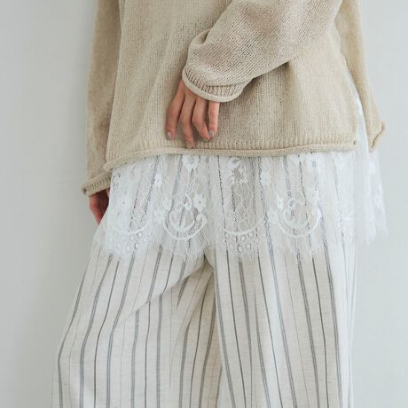 ・裾からちらりと覗くレースが、レイヤードスタイルに抜け感をプラス