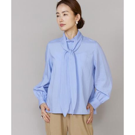 ■デザイン取り外し可能なボウタイとハイネックを組み合わせたブラウス。ボウタイはフロントやサイドで結んでアレンジを楽しめます。身体のラインを拾わない程良いリラックスシルエットに、クラシカルな釦使いが上品なアクセントをプラス。さらに、ラフな表情が魅力の素材を使用することで、きちんと感の中にもカジュアルさが程よく漂う一着に仕上がっています。■素材ナチュラルな表情感のある軽量タイプライターを使用し、艶のあるしなやかなハリ感と、ドライでさらりとした風合いが特徴の素材です。表面にほどよいシボ感があることで生地に深みと表情が加わり、着心地も快適でストレスフリーに着用いただけます。・後ろボタンあり・ボウタイ取り外し可・水洗い可■サンプル撮影商品画像の商品はサンプルです。実際の商品とはサイズや色味、素材、デザイン等の仕様が若干変更になる場合がございます。■カラーについては、可能な限り実際の商品に近いカラーにて撮影をおこなっておりますが、照明の関係により実際の製品とは色味が違って見える場合があります。またパソコン・スマートフォンなどの環境により、若干製品と画像のカラーが異なる場合もございます。現物と画像のカラー差異については返品理由となりませんので、予めご了承ください。■サイズ表記はあくまで目安となります。