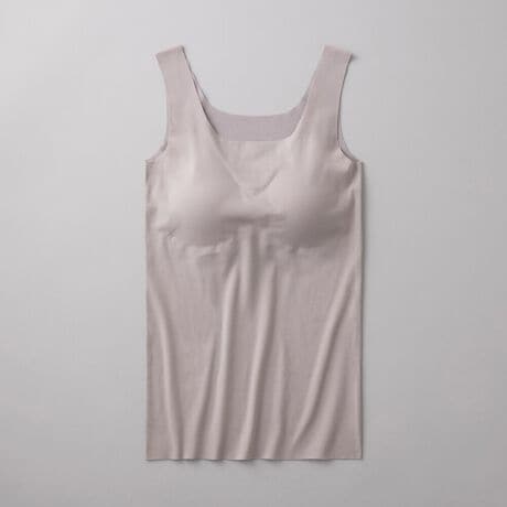 肌側オーガニックコットン100%と完全無縫製の融合で実現した、とことんお肌にやさしいカップ付きタンクトップ。