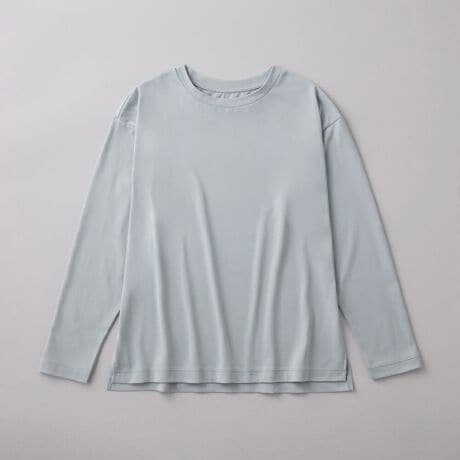 肌側オーガニックコットン100%で、汗も透けも紫外線も気にならない。体型カバーも叶える長袖Tシャツ。