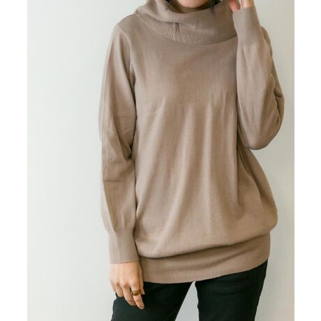 締め付けのないオフタートルなのでタートルネックが苦手な方も着やすい。