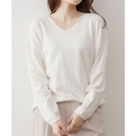 前後のVネックがキレイ魅せになるコットンニットトップス。
