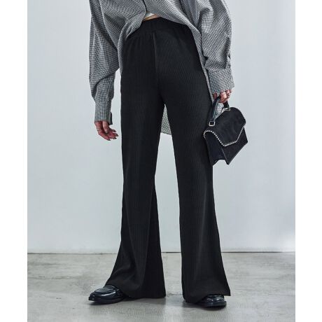 薄手のリブニット素材で春夏にぴったりのフレアパンツ。