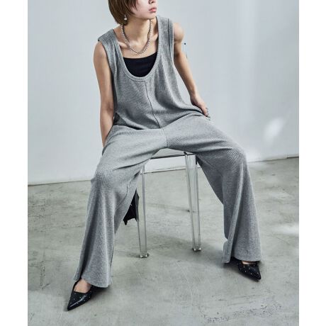 伸縮性のある針抜きテレコ素材で着心地抜群のオールインワン。