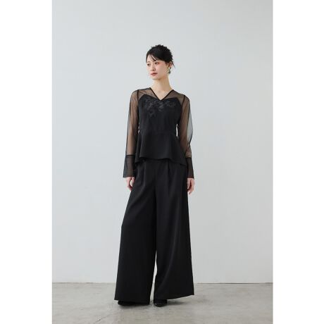 niana ニアナ 胸元の刺繍デザインがクラシカルなペプラムブラウスとワイドパンツの2ピースセット。