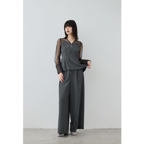 niana ニアナ 胸元の刺繍デザインがクラシカルなペプラムブラウスとワイドパンツの2ピースセット。
