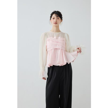 生地をたっぷり使用した立体感のあるフリルビスチェデザインが目を惹くブラウス。