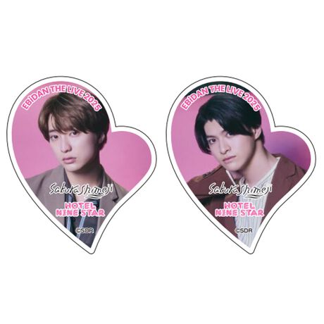 「EBiDAN THE LIVE 2025 HOTEL NINE STAR」開催記念POPUP SHOPで販売された、Sakurashimejiメンバーのハート型アクリルマグネットです。※本商品は「Sakurashimeji」メンバー全2種の中から、ランダムでお届けいたします。 ※メンバー(絵柄)はお選びいただけません。 ※中身が見えない仕様のため、複数ご購入いただいた場合、絵柄が重複する可能性がございます。予めご了承ください。