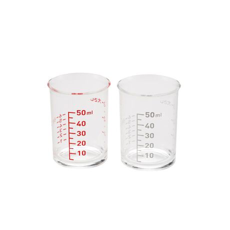 ●透明液が見やすい赤の目盛と醤油など濃い色の液が見やすいシルバーの目盛の2個セット。
