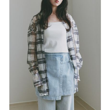 レース チェック 長袖 シアー シャツ Freesia フリージア