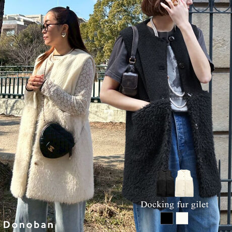 ふんわりとしたボアと毛足が長いシャギーをドッキングさせ表情豊かなロングジレ。