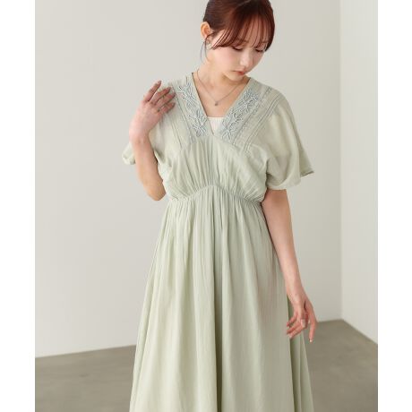 【選べるサイズ展開】テープ刺繍ピンタックレースワンピース