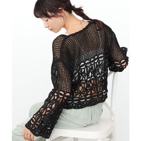 さらっとした柔らかい肌触りでストレスなくお召し頂けます。繊細なクロシェ編みの為、引っ掛けには充分ご注意ください。