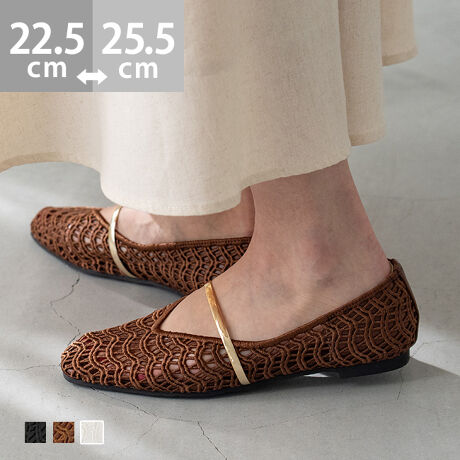 クロシェ編みで見た目にも涼しいデザイン。履き口はUカットで丸みのある女性らしい肌見せ感を演出。