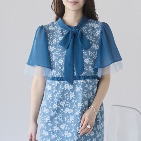立体感のあるボタニカル柄ジャカード素材が上品で洗練された印象を演出します。お袖は二枚仕立てのフレアスリーブデザイン。