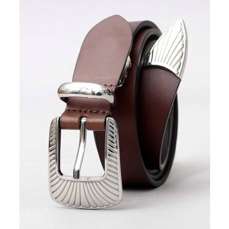 バックルと先止金具には、フラッシュシルバーのウエスタン調メタルパーツを採用。