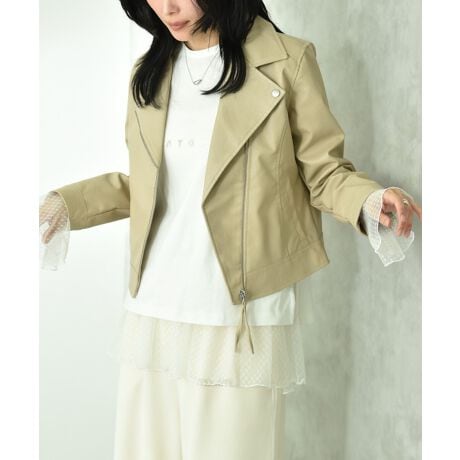 定番のライダースジャケット。天然レザーのような柔らかいフェイクレザーを使用した、シンプルで使い勝手の良いジャケットが登場です。顔回りがすっきり見えるタイプなので、女性らしい優しい印象に◎フロントを開けた時、すっきり見えるようにシルエットにこだわりました。ハードなイメージのライダースのデザインを極限までシンプルに仕上げているので、スタイリングに悩みません。通勤スタイルにも合うきれい目な大人なデザインでサイジングは程よく体から離れるタイプ。